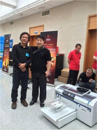 年會現(xiàn)場,愛普生F2080t恤衫印花機(jī)的表現(xiàn)不負(fù)眾望,打印的t恤衫色彩效果得到藝術(shù)設(shè)計攝影界觀眾的一致好評,我為公司也為愛普生F2080樹立了良好的形象,作為Epson大中華區(qū)華北區(qū)和華南區(qū)的獨(dú)家代理,在展會現(xiàn)場,公司銷售人員及技術(shù)人員熱情地回答和專業(yè)的機(jī)器操作,都給與會觀眾留下了極好的印象,樹立了專業(yè)的公司形象。