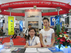 我公司展位位于2號(hào)館內(nèi), 總展出面積200多平米,主要展出了戶外高精度噴繪機(jī)——水星噴繪機(jī)、YSL雷鳥/颶風(fēng)設(shè)備,戶內(nèi)寫真機(jī)——MIMAKI系列,雕刻機(jī)系列——雕霸雕刻機(jī)、利得寶激光雕刻機(jī),還展出了藝美佳耗材——imacolor藝美佳墨水、imacolor藝美佳相紙系列。